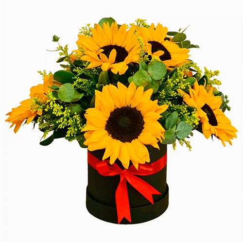 Este arreglo presenta la majestuosidad de los girasoles, con sus vibrantes pétalos amarillos que reflejan la alegría y la energía del verano.